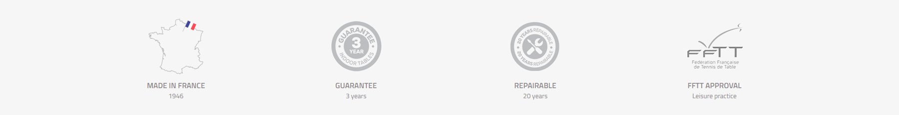 Miza je izdelana iz ivernate plošče debeline 16mm in tako nudi soliden odboj za domačo rekreacijo. Miza vključuje tudi mrežo, ki se namesti ob straneh in je ni potrebno odstraniti, ko mizo zložimo.